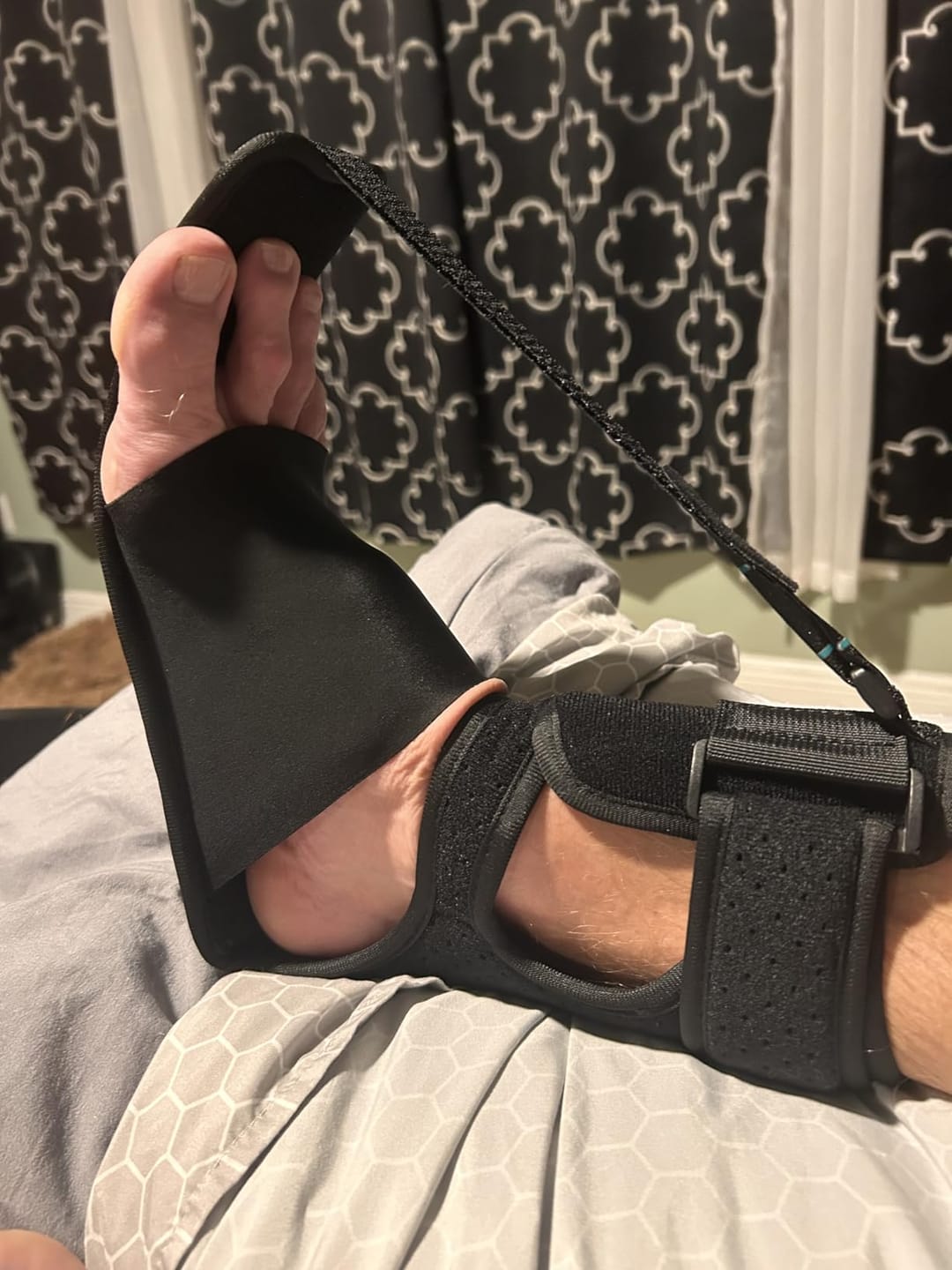 Ürün gece yatmadan önce ayağa takılır ve ayarlanabilir kayışlarla konforlu şekilde sabitlenir. Uyku boyunca destek sağlar.